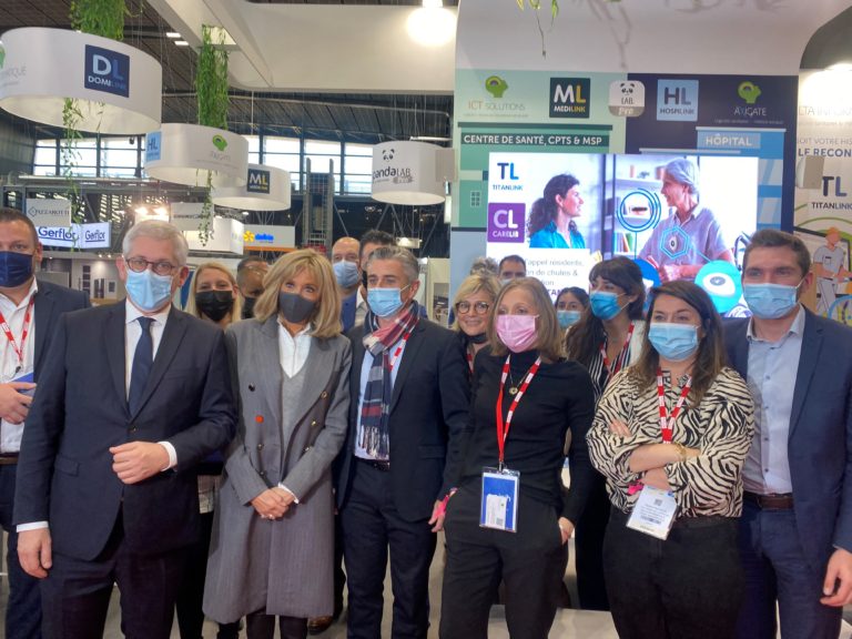 Masqués mais heureux de vous revoir ! Nous avions prévu un programme riche en nouveautés avec des démonstrations tous les heures de nos solutions pour connecter TOUS les professionnels de santé : TITANLINK, DOMILINK (HAD & SSIAD), HOSPILINK (Hôpital, SSR,..), MEDILINK (MSP, CPTS, Centres de santé), Pandalab pro et Carelib (Solution de détection de chutes & appels résidents.